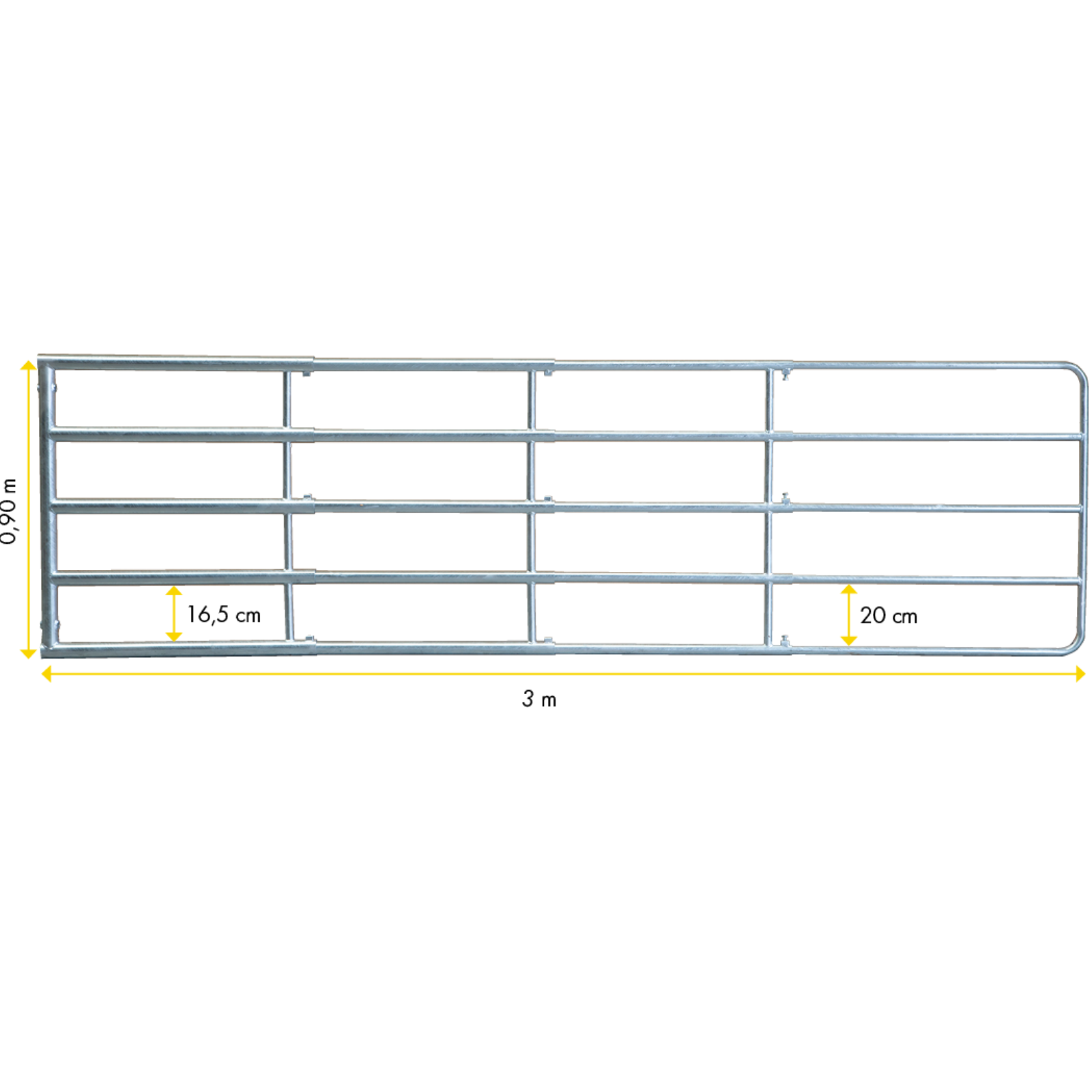 3-fach verstellbares, teleskopierbares Weidezauntor. Montagemaß 125 - 300 cm. Höhe 90 cm.Feuerverzinkt. Gewicht 31 kg.Inkl. Montageset