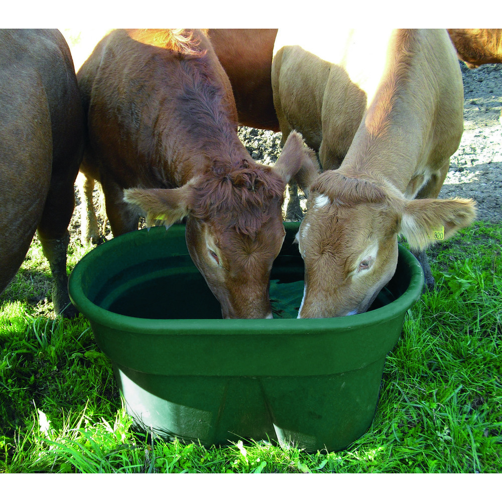 Stabile und preiswerte Weidetränke für den Außenbereich, UV-stabilisiert, mit Umrandung für optimale Stabilität. Das Nachrüsten eines Einhängeschwimmerventils ist möglich (z.B. Best.Nr. 60530 oder 43237). Stapelbar, leicht und einfach aufzustellen. Ohne Ablaufstopfen. Inhalt: 150 l. L x B x H: 102x72x38cm