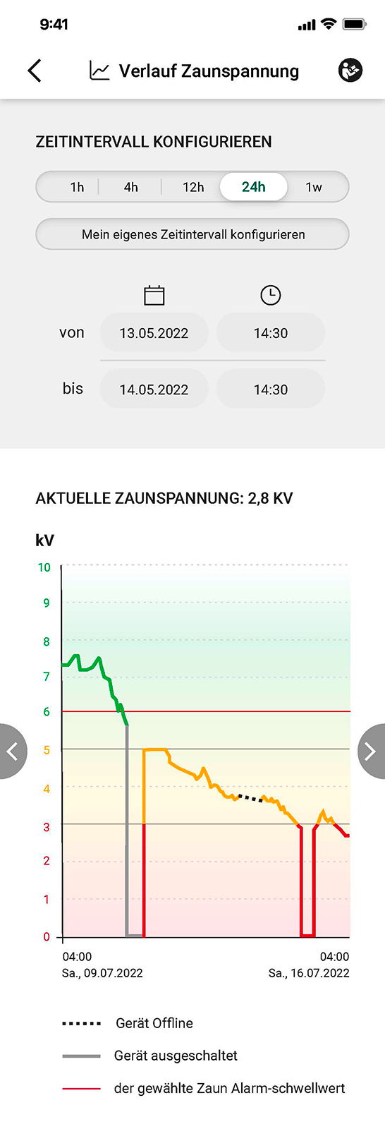 - Spannungsprotokoll in der App