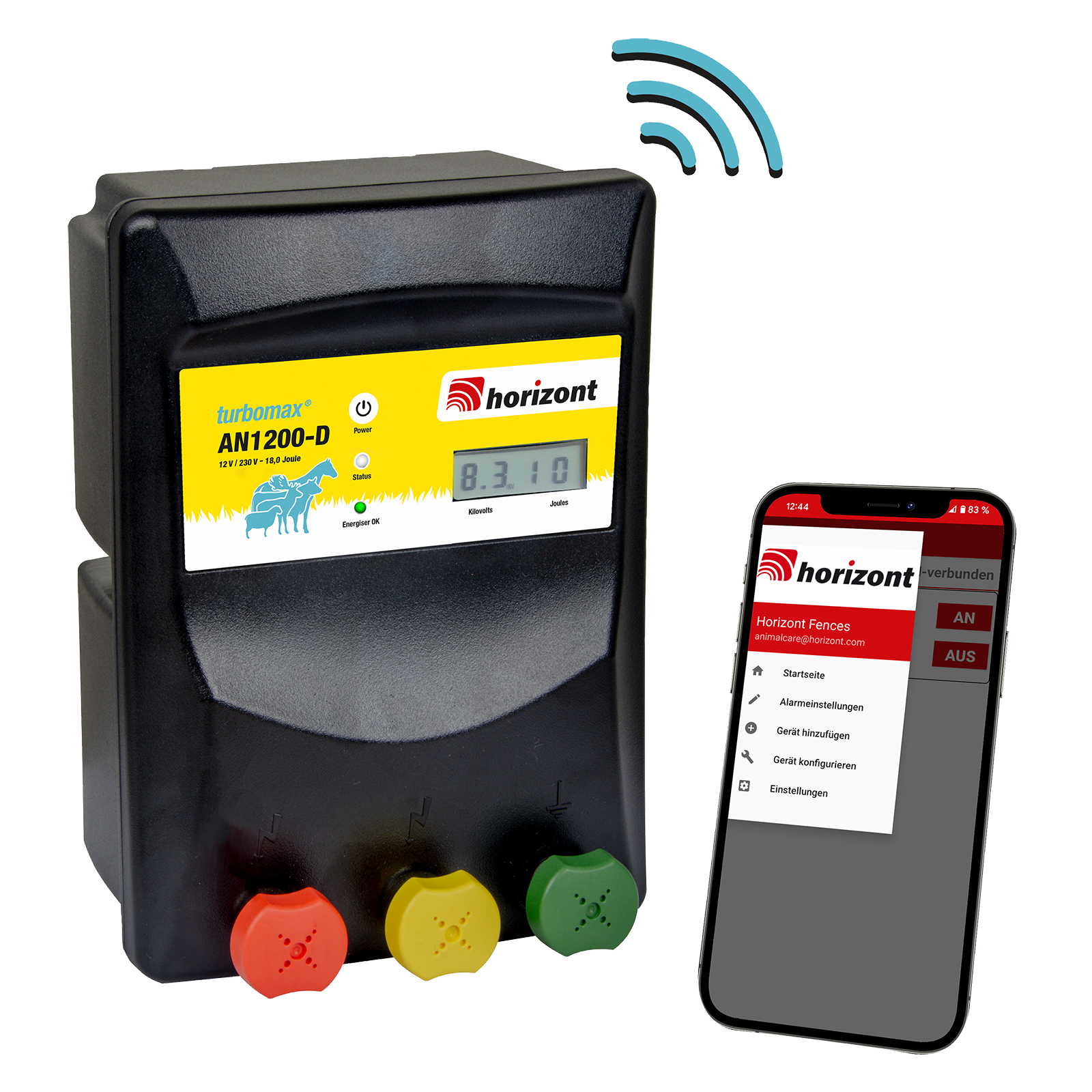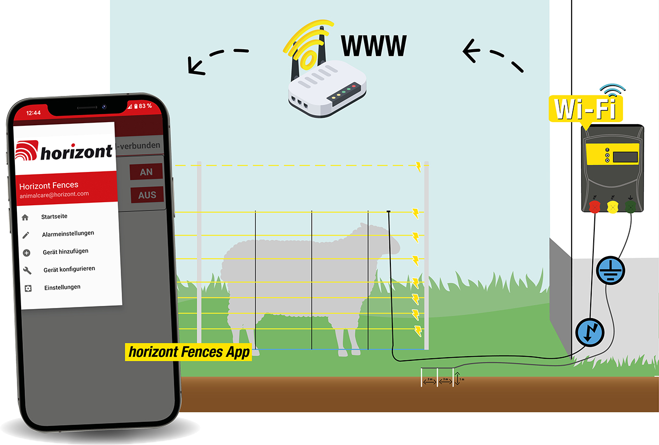 Per Wifi/WLAN über App steuerbares, schlagstarkes DUO-Weidezaungerät (Betrieb mit 230 V oder 12 V möglich)! Einsetzbar auch bei starkem Bewuchs und langen Zaunanalgen. LCD-Display zur Anzeige der Zaunspannung.Das hochwertige LCD Display informiert über die aktuelle Zaunspannung und gespeicherte Energie. Zusätzlich können Sie sich die Akkuspannung und den WLAN-Verbindungsstatus anzeigen lassen. Für mehr Sicherheit von Mensch und Tier schaltet die Funktion Impulse Control das Weidezaungerät im Falle einer zu schnellen Impulsabgabe (z.B. techn. Defekt) ab oder reduziert die Ausgangsenergie. Durch die 2-Stufen-Technik werden bei Störungen, z.B. frischer Bewuchs oder ein runter gefallener Torgriff, nach einer Sicherheitsspanne von 55 Sekunden, höhere Energien in den Zaun eingespeist, wodurch Ihre Tiere auch bei Störungen sicher auf der Weide sind.Über die hochwertige 2-farbige LED-Kontrollanzeige ist deutlich die Akkukapazität und die Aktivität des Gerätes zu sehen. Für eine optimale Impulskontrolle blinkt das Weidezaungerät im Takt der Impulsangabe. Sie erkennen damit schon von Weitem die Aktivität des Geräts.Das Gerät verfügt über einen Druckknopf zum Ein- und Ausschalten. Das Weidezaungerät weist mit deutlich hör- und sichtbaren Signalen auf starke Lastwechsel mit einer Unterschreitung von 400 Ohm hin. Ihr Weidezaun sollte daraufhin auf Störungen oder Schäden kontrolliert werden.Eine integrierte Tiefentladeabschaltung schont Ihren Akku effektiv. Unsere Weidezaungeräte werden aus hochwertigen Kunststoffen gefertigt und sind UV-beständig, spritzwassergeschützt, verwindungssteif, schlagfest sowie ölbeständig- dies garantiert Ihnen eine langjährige Haltbarkeit.Lieferumfang: Zaunanschlusskabel, Akkuanschlusskabel, Netzteil und WarnschildTechnische Highlights: