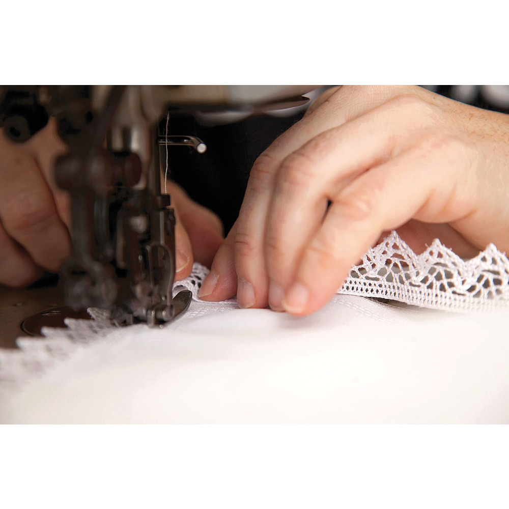 Produktinformationen "Weihkorbdecke IHS weiß mit Spitze mit rotem Garn und Nadel"