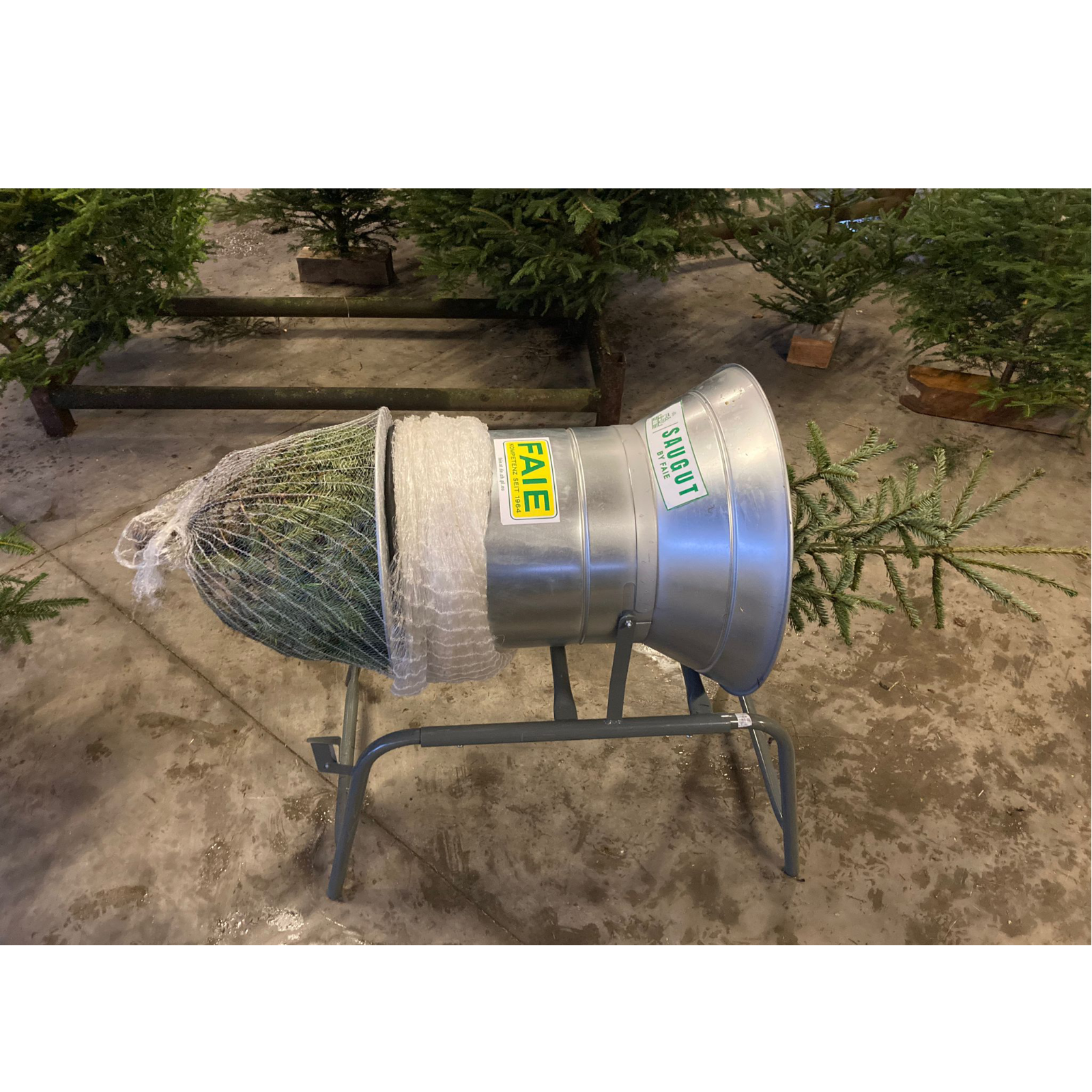 Der Durchmesser von 55 cm passt für kleine und große Weihnachtsbäume, auch mit starken Ästen oder bei gefrorenen Bäumen und ermöglicht ein rasches und leichtgängiges Durchziehen der Bäume – natürlich in Kombination mit unserem Verpackungstrichter Typ2, FAIE Art.Nr. 124633.