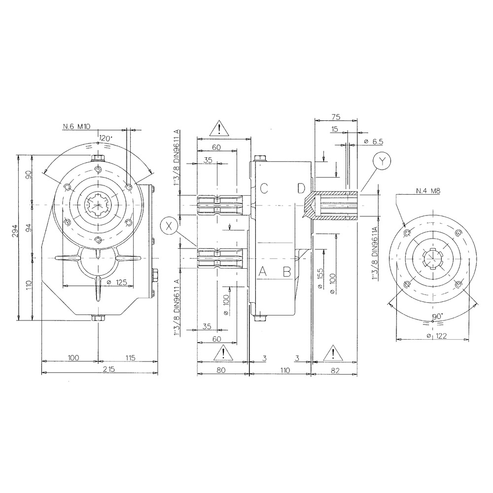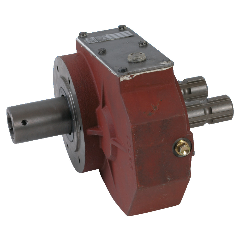 Technische Daten: 22 kW, 540 U/min, 395 Nm Anschluss Eingang: 1-3/8x6 (Innenprofil) Anschluß Ausgang: 1-3/8x6 1. Ausgangswelle: Drehrichtung bleibt gleich 2. Ausgangswelle: DrehrichtungsumkehrIm allgemeinen führen Drehmomentspitzen bis zum 2-fachen des Nenndrehmoments zu keiner Beschädigung der einzelnen Getriebebauteile. Vollständige Unversehrtheit kann jedoch nur durch eine geeignete Sicherheitsvorrichtung gewährleistet werden.