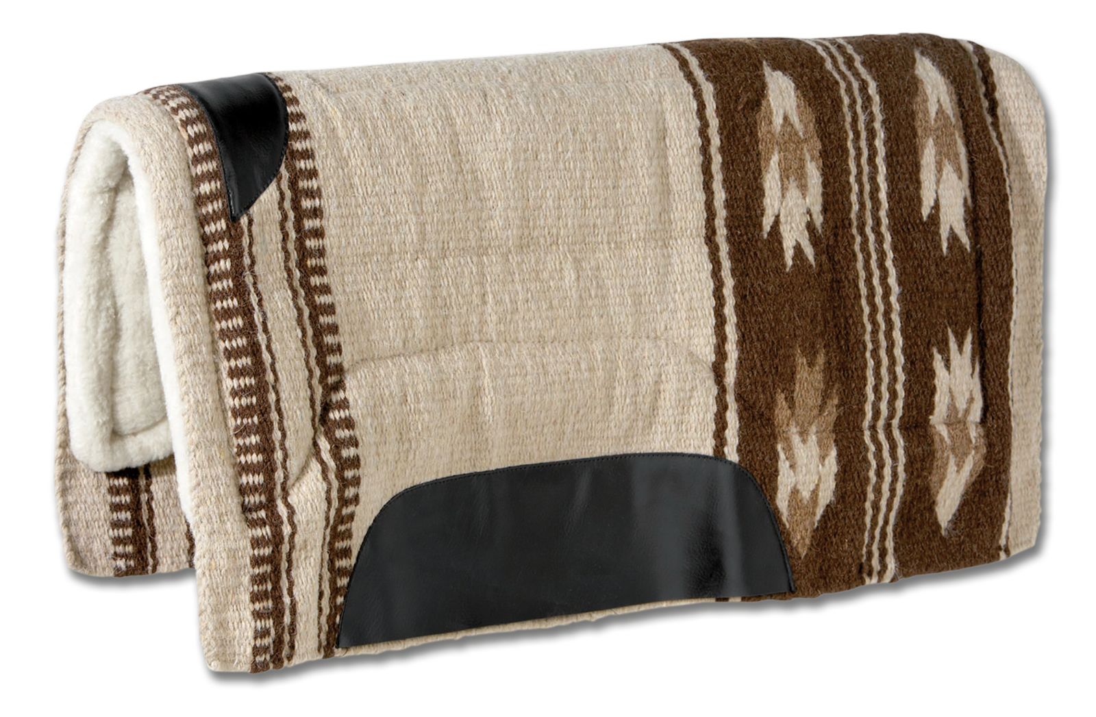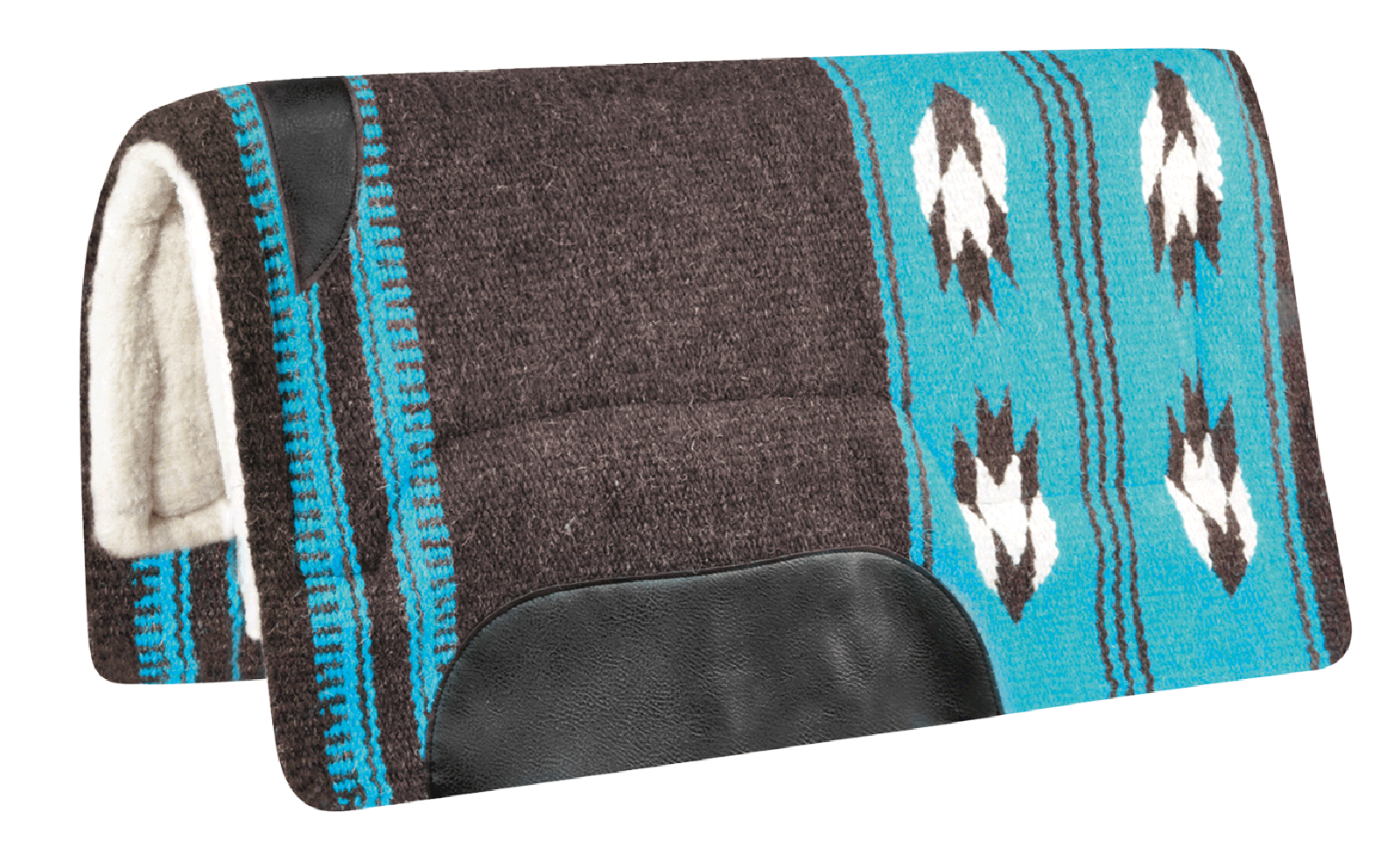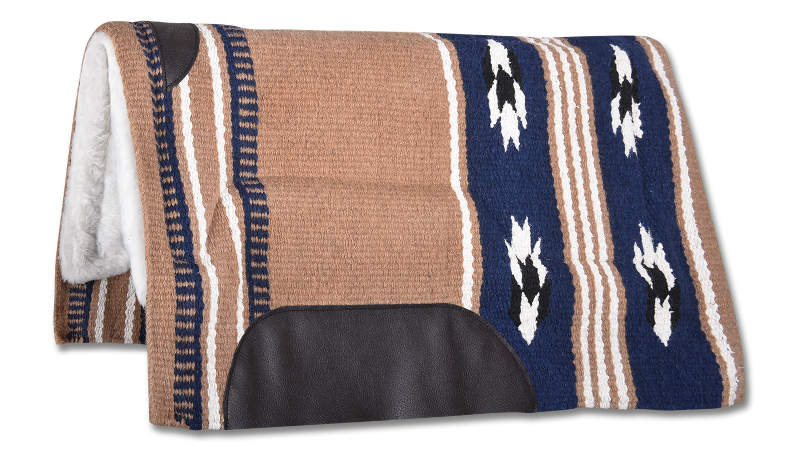 Diese hochwertige Westernsattelunterlage überzeugt durch ihre strapazierfähige Wollmischung und die ergonomisch geformte Synthetikfell-Polsterung.