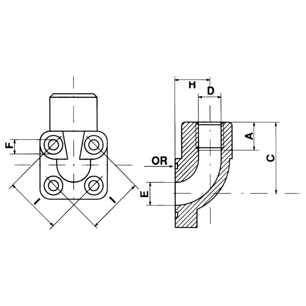 4-Loch Befestigungsflansch mit O-Ring und Schrauben.