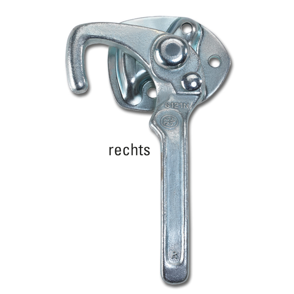 Mit integrierter Sicherung. Er kann sich nicht von selbst öffnen. Für Kipperaufbauten und PKW-Anhänger, verzinkt, (ohne Öse).