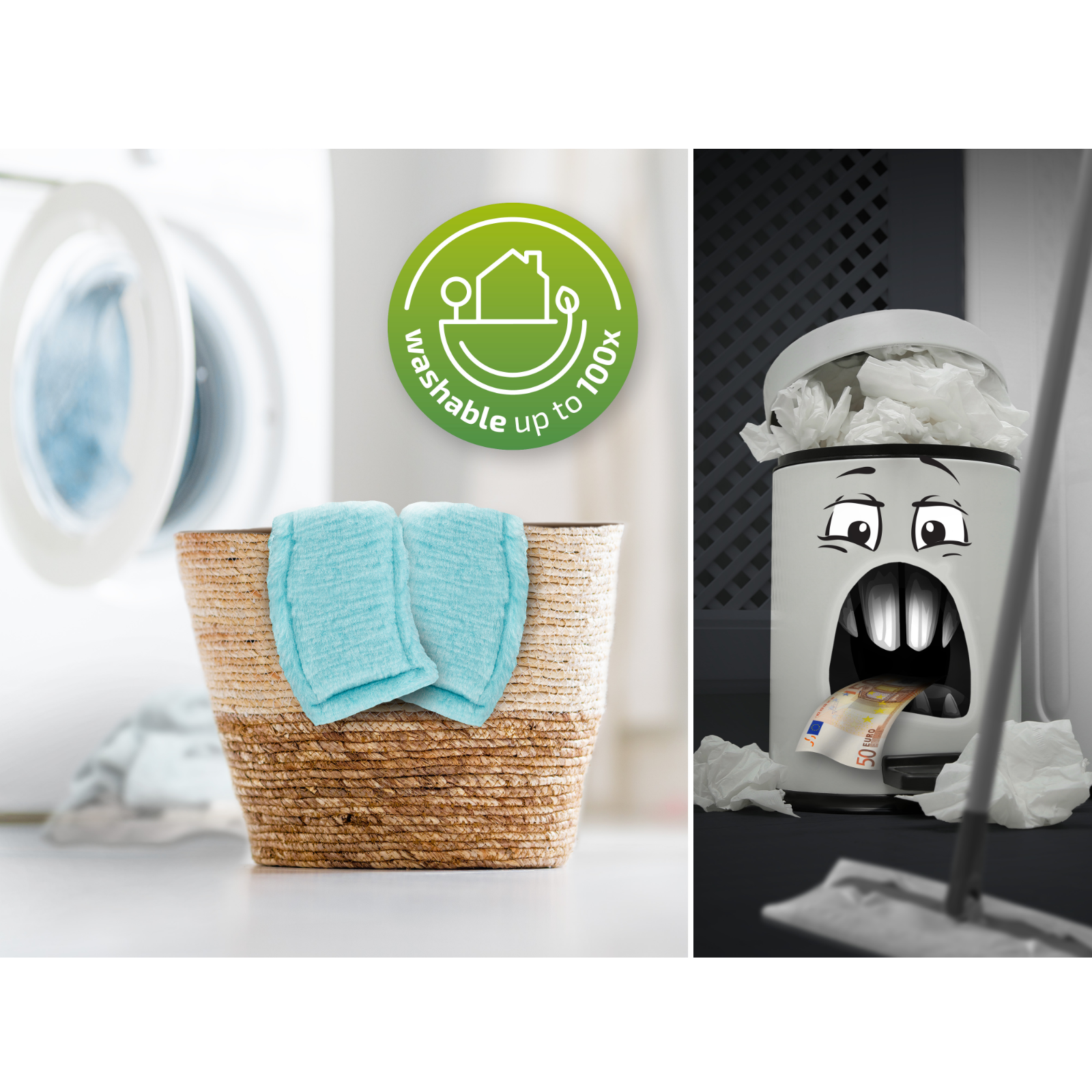 • Langlebiger und nachhaltiger Wischbezug: static plus bei 40°C bis zu 100x in der Waschmaschine waschbar