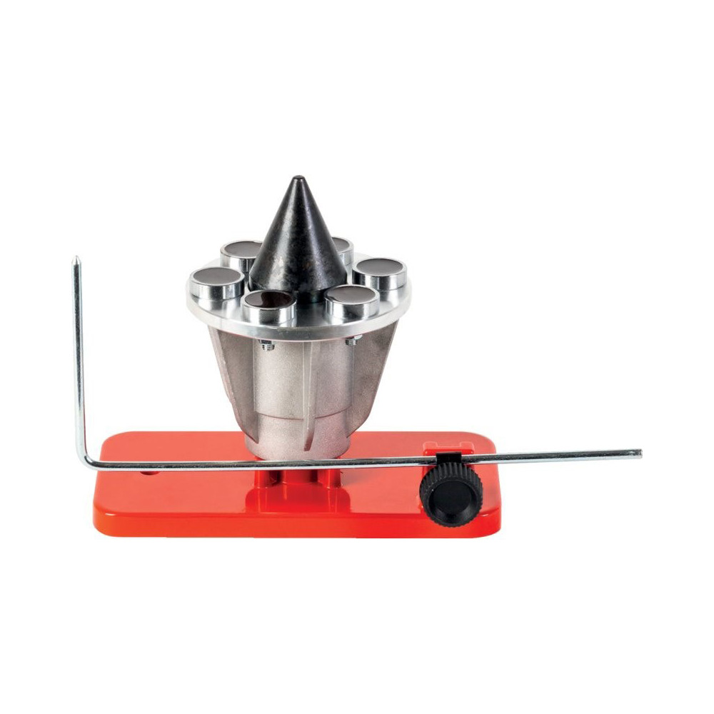 Praktisches Werkzeug zum einfachen Auswuchten von Rasenmäher, Traktor oder Freischneidermesser. Für Bohrungen von 10 - 32 mm. Zentrierung über Konus mit 6 starken Magneten. Inkl. Flansch für Wandbefestigung.