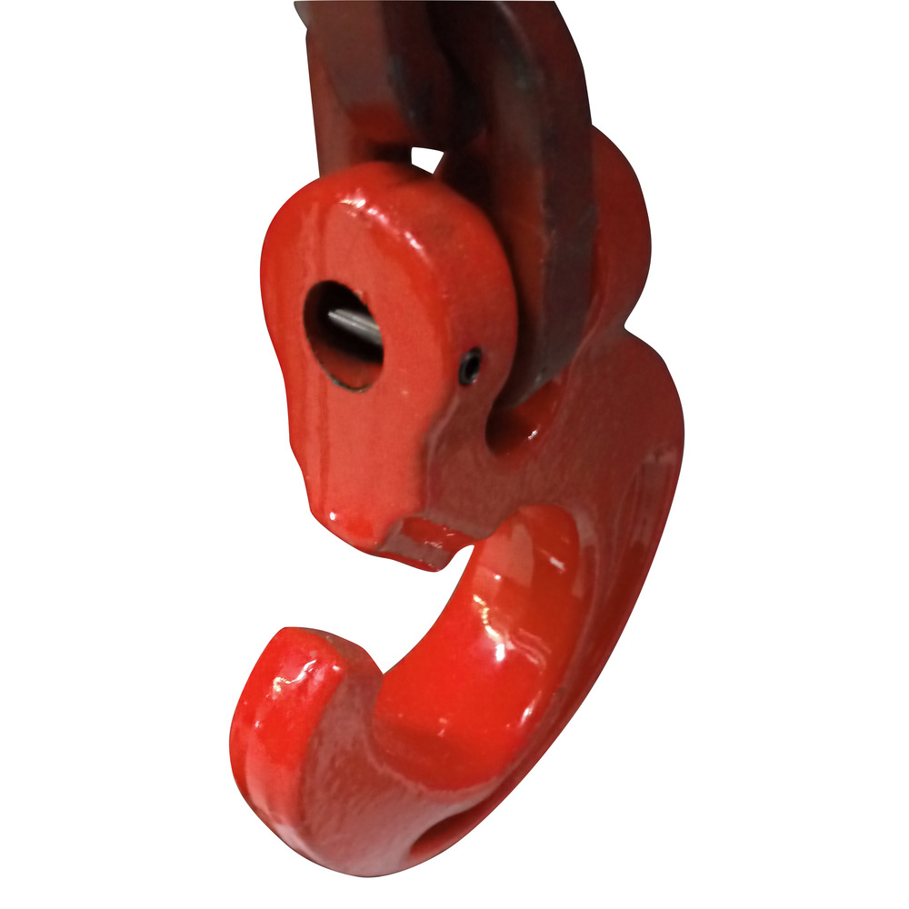 Hochfeste, lackierte Rückekette mit Durchstecknadel und Kuppelschlitzring, G10 Ausführung mit höherer zul. Zugkraft bei gleichem Gewicht wie G8.