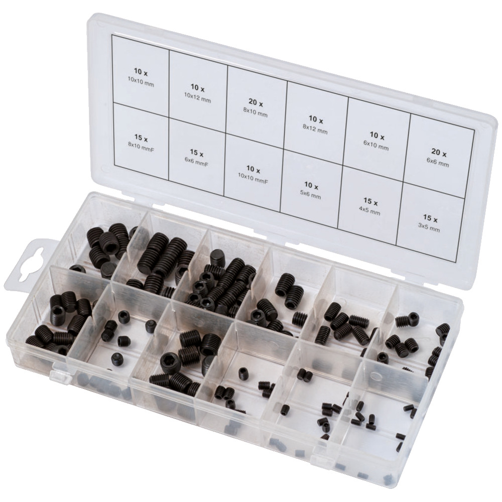 umfangreiches Maden/- Wurmschraubensortiment im Kunststoffkoffer nach DIN913 Größen M3-M10.
