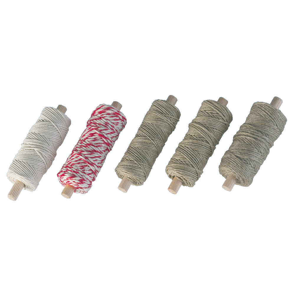 bestehend aus: 2 Stück Bratenschnur weiß, rot/weiß 100% PES, 3 Stück Wurstzwirn, 100% Naturfaser