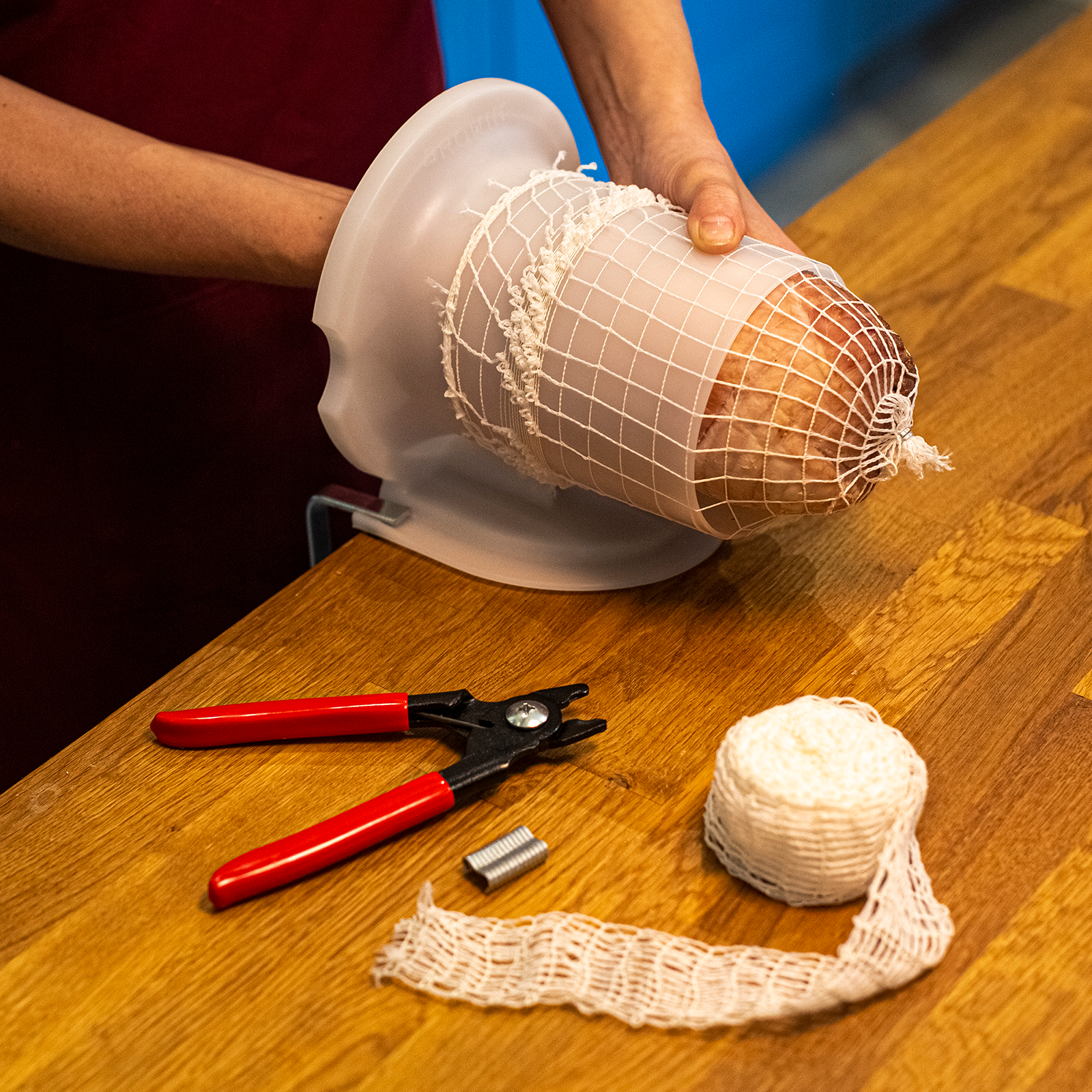 Ermöglicht die komfortable und einfache Herstellung z. B. von Wurst, Schinken und Hackbraten. Auch als Räuchernetz geeignet. Temperaturbeständig bis +220°C.1-2,5 kg