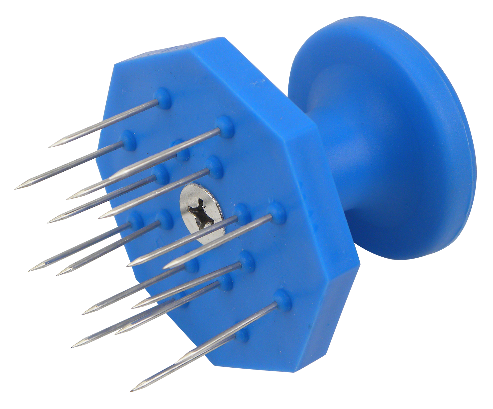 Kunststoff-Wurstpiekser mit 16 Edelstahlnadeln. Verhindert das Aufplatzen von Brüh- und Bratwürsten oder auch Salami. Ø ca. 60 mm. Gewicht ca. 60 g.