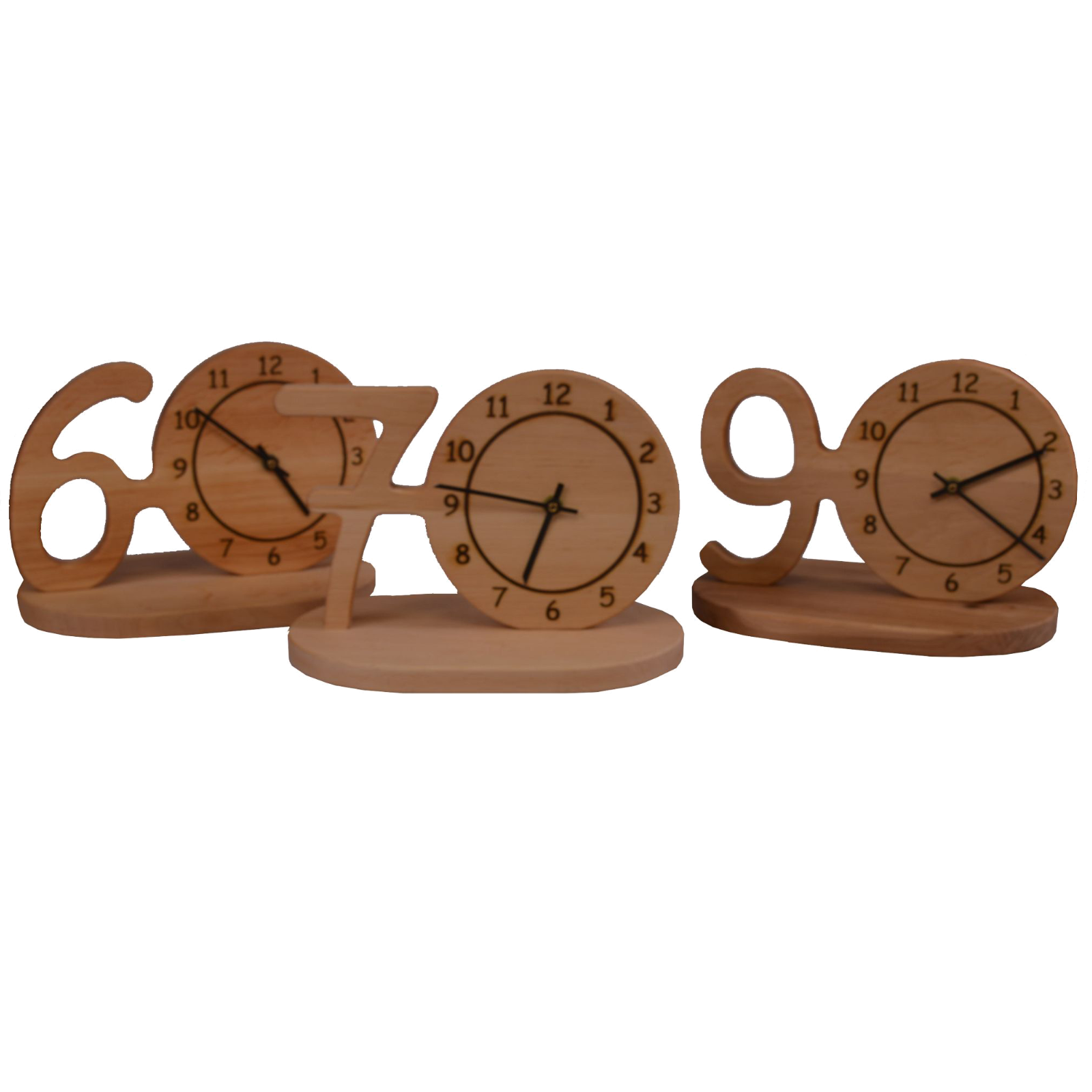 Die Zahlen-Uhr aus Erlenholz ist ein originelles Geschenk zu runden Geburtstagen.