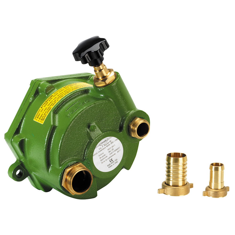 Selbstsaugende Zapfwellenpumpe für alle Schlepper mit Standart-Zapfwellenanschluss 1 3/8 x 6. Die Drehrichtung der Zapfwellenpumpe ist auf den Antrieb gesehen nach links (Traktor Heckzapfwelle dreht im Uhrzeigersinn nach rechts). Förderleistung max 150 L/min, Höchstdruck 25 bar, Anschluss saugseitig 1″AG auf 30 mm Schlauch, druckseitig 1/2 AG auf 3/4″ Schlauch. Durch dasDruckregelventil ist ein stufenloses Einstellen des Arbeitsdruckes sowie der Durchflussmenge möglich, dadurch ist diese Pumpe ideal für alle Reinigungs- und Bewässerungsaufgaben geeignet. Achtung: Bei Absperren der Wasserentnahme istdas Abstellen der Pumpe trotzdem erforderlich.