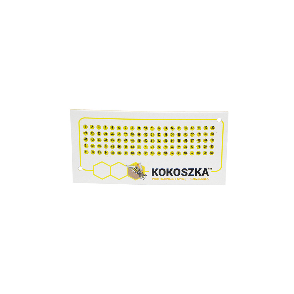 Zeichenplättchen zum Markieren von Königinnen in verschiedenen Farben. Durchnummeriert von 1 bis 100.
