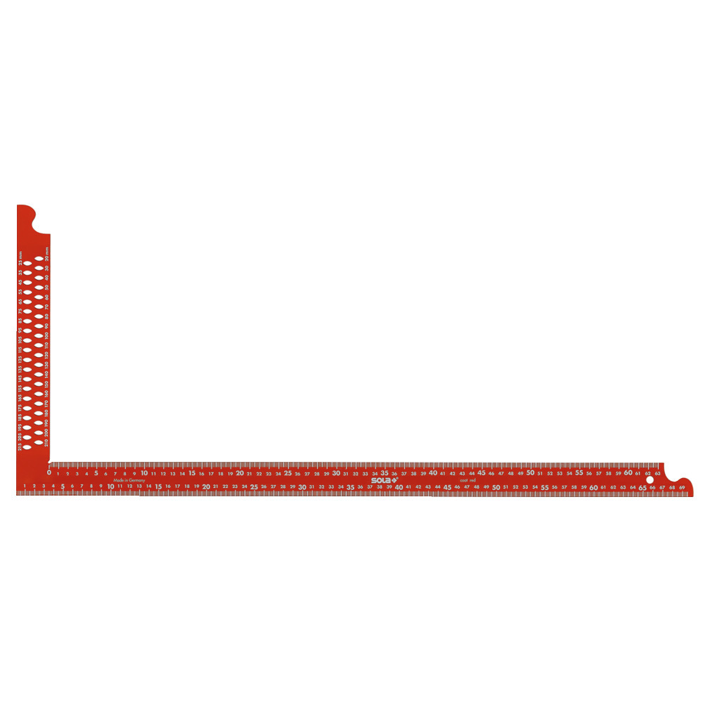 Profi-Winkel aus pulverbeschichteten Stahl mit Anreißlöchern in 0,5 cm Schritten. Markierung von 2 - 20,5 cm, Schenkelbreite 35 mm, zweiteilige mm/cm Skala hochwertig weiß gedruckt.