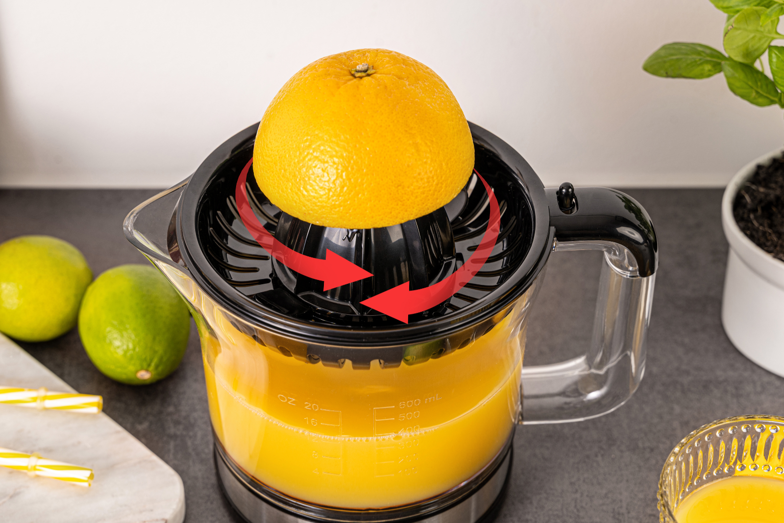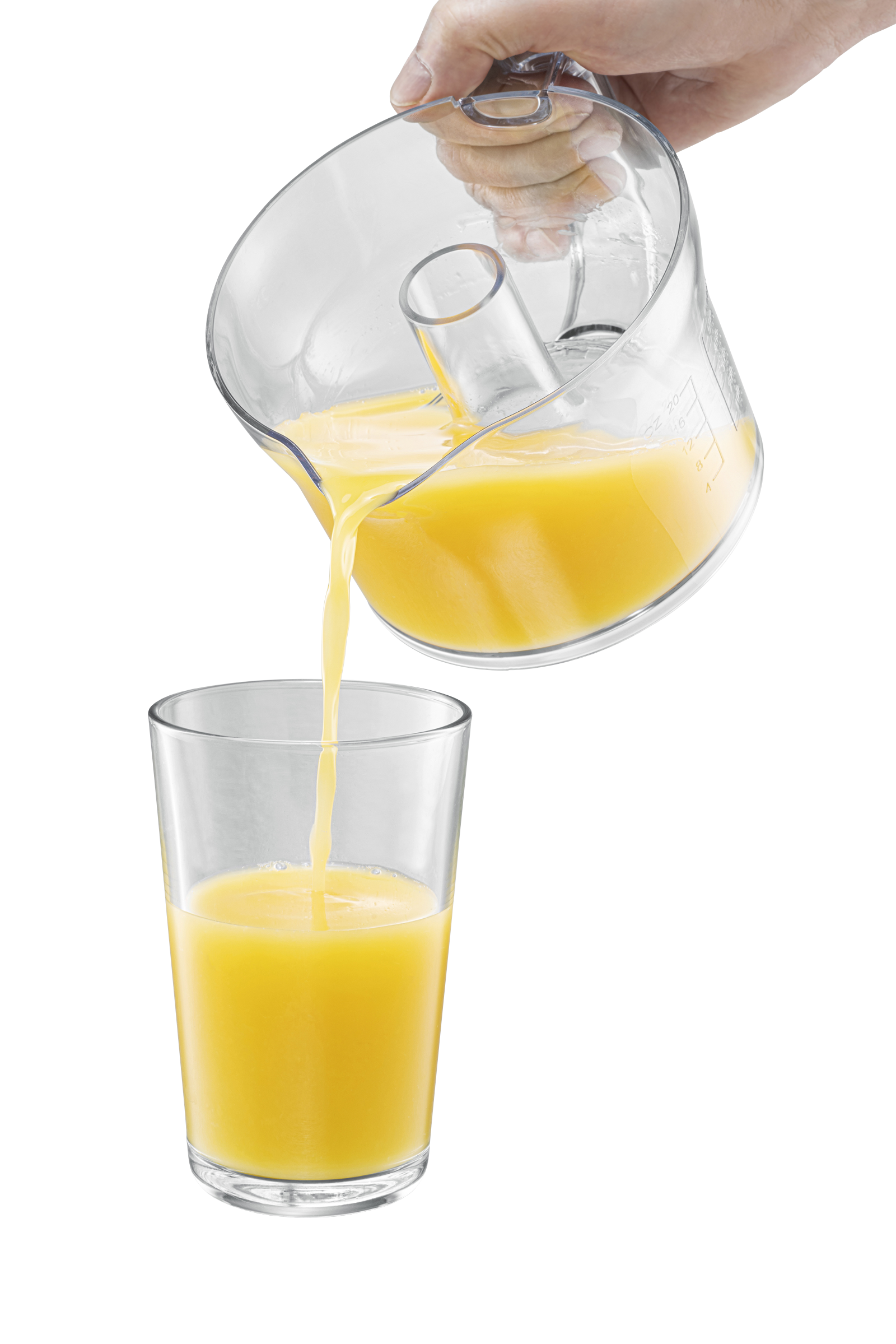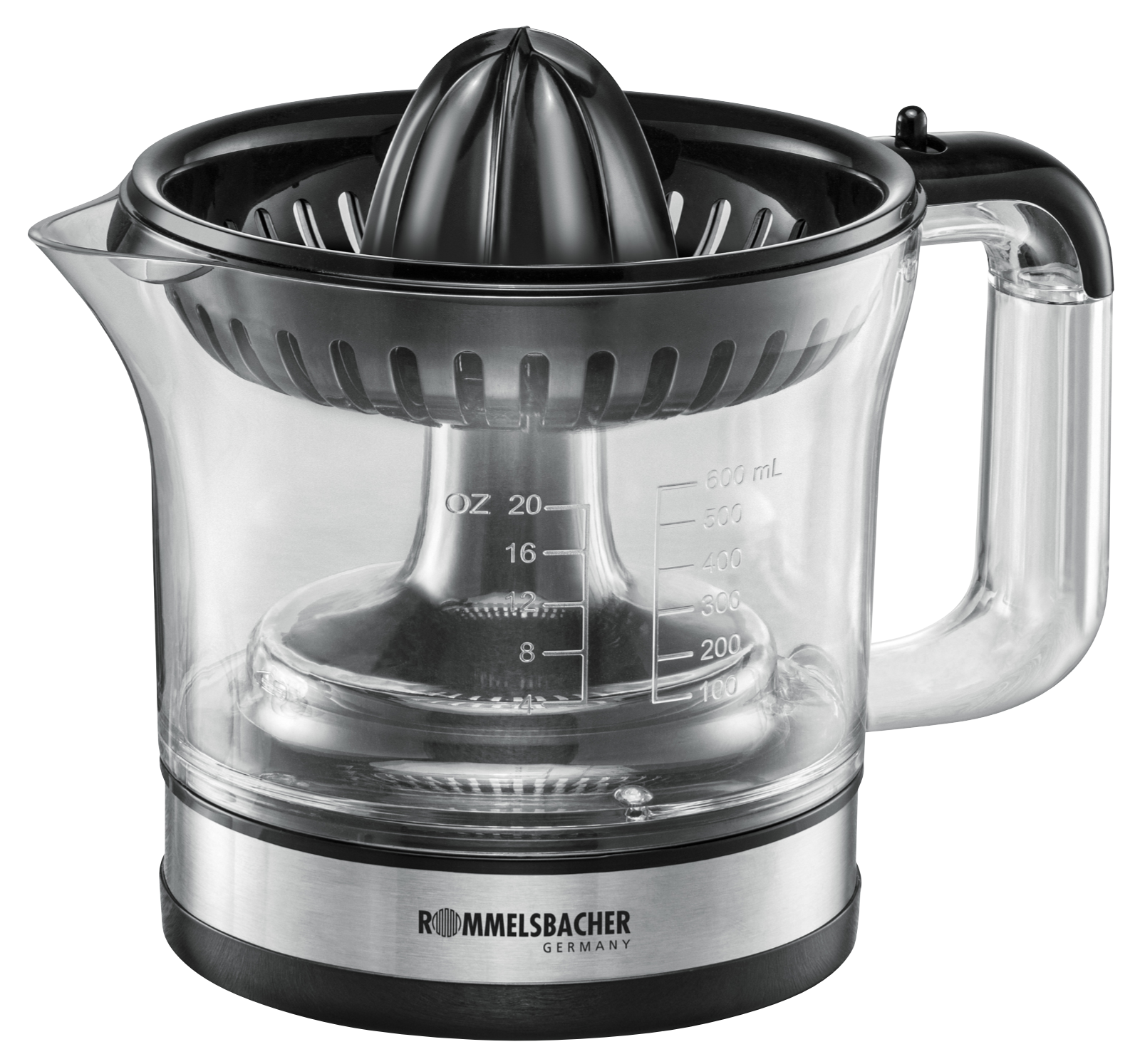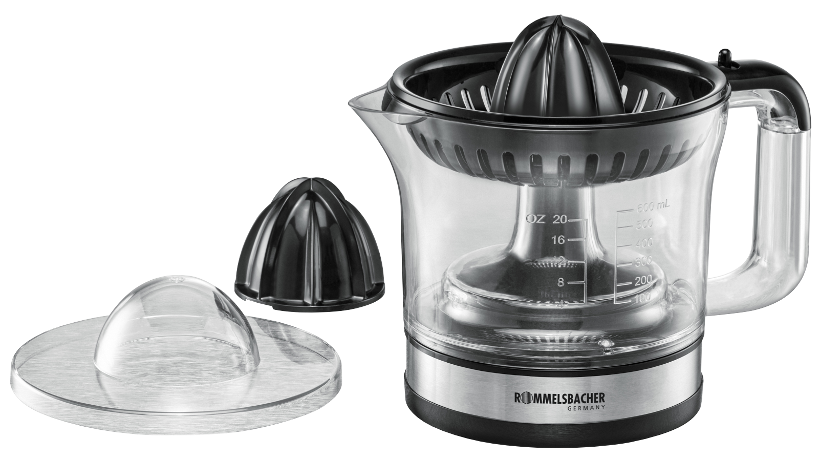 - abnehmbarer transparenter 0,6 Liter Saftbehälter mit Skalierung, BPA-frei