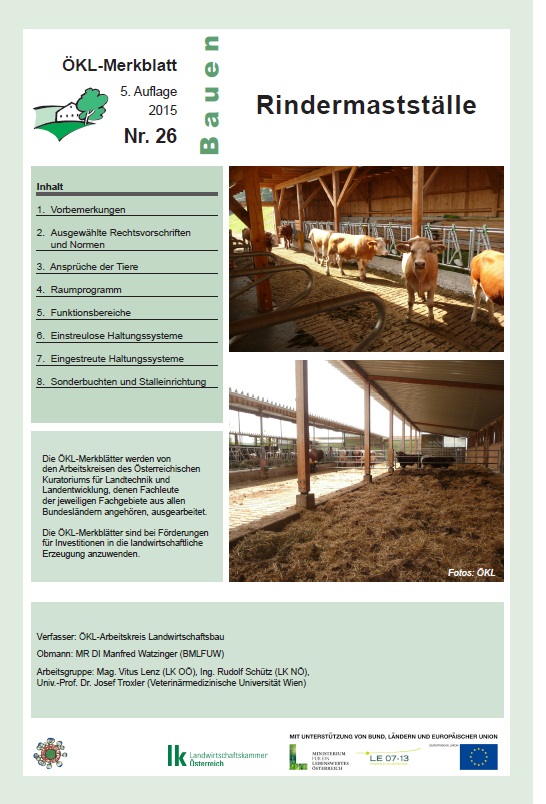 Das ÖKL-Merkblatt 26 „Rindermastställe“ behandelt die Haltung von Mastrindern. Diese sind männliche, kastrierte und weibliche Rinder in einem Alter über 6 Monate, die zum Zweck der Rindfleischerzeugung gehalten werden. Darüber hinaus werden im Merkblatt auch Informationen über die Kälberhaltung im Rahmen der Rindermast gegeben.