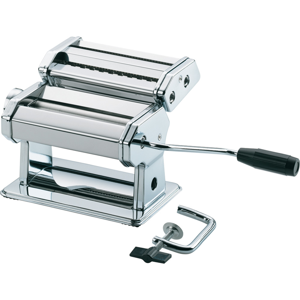 The pasta machine has nine different dough thickness settings, ranging from 0.3 mm to 3 mm . This allows you to choose the perfect thickness for your preferred type of pasta. The maximum dough width is a generous 14.5 cm, which is enough to make wide sheets of lasagna or fettuccine.