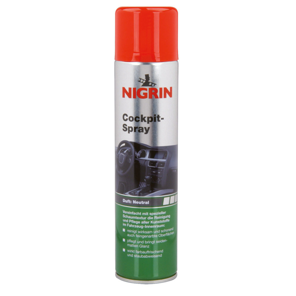 With its special foam texture, NIGRIN Cockpit Spray makes it easier to effectively and gently clean and care for all plastics in the vehicle interior. The foam allows for easy, targeted application. NIGRIN Cockpit Spray forms a waterproof, satin-matt, dirt-repellent and antistatic protective film on the plastic, thus reducing your care requirements.
