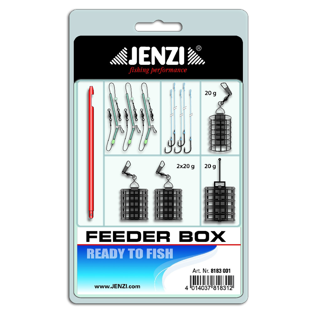 Jenzi feeder box. Perfect for beginners in the popular (and catchy!) feeder fishing. Everything included! 13 pieces