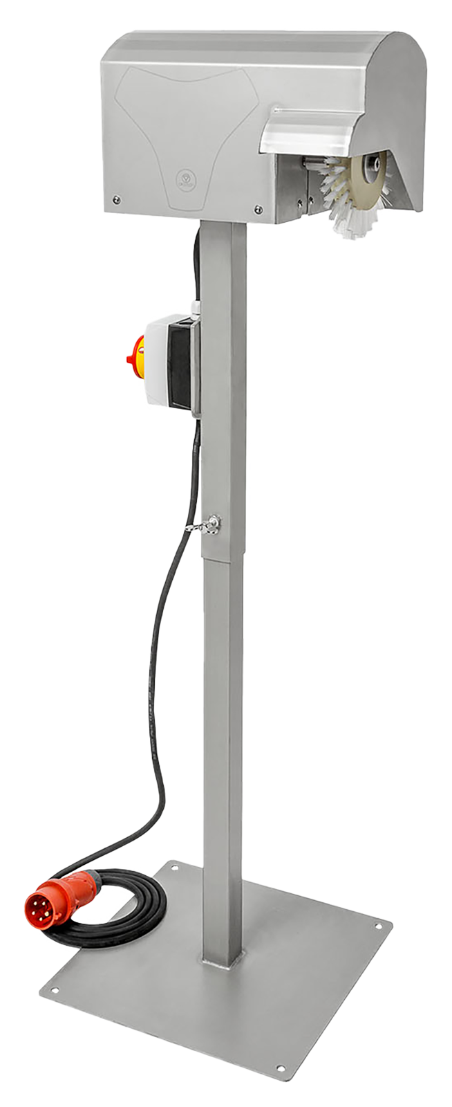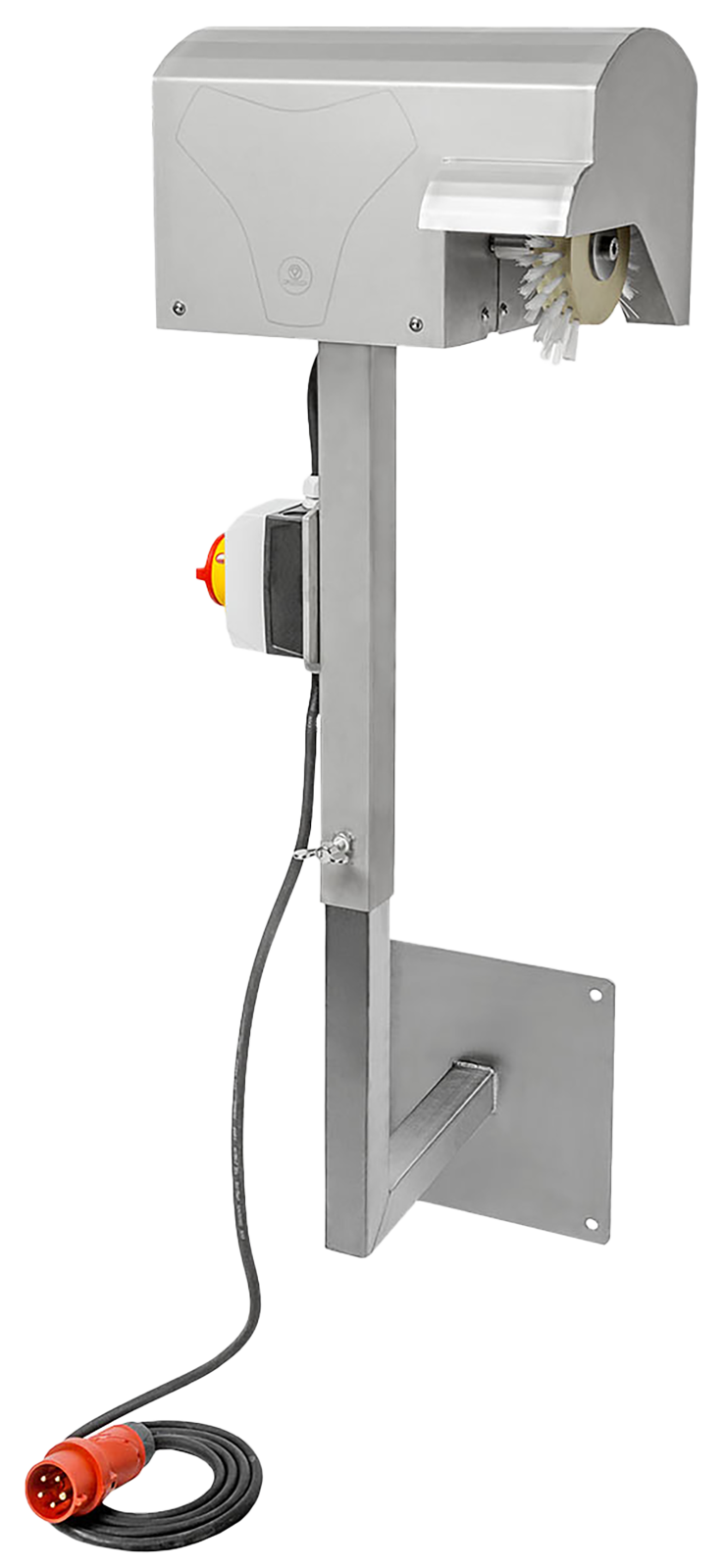 The powerful rotating brush, combined with a continuously adjustable fresh water supply, ensures thorough and hygienic removal of blood and skin residues after slaughter.