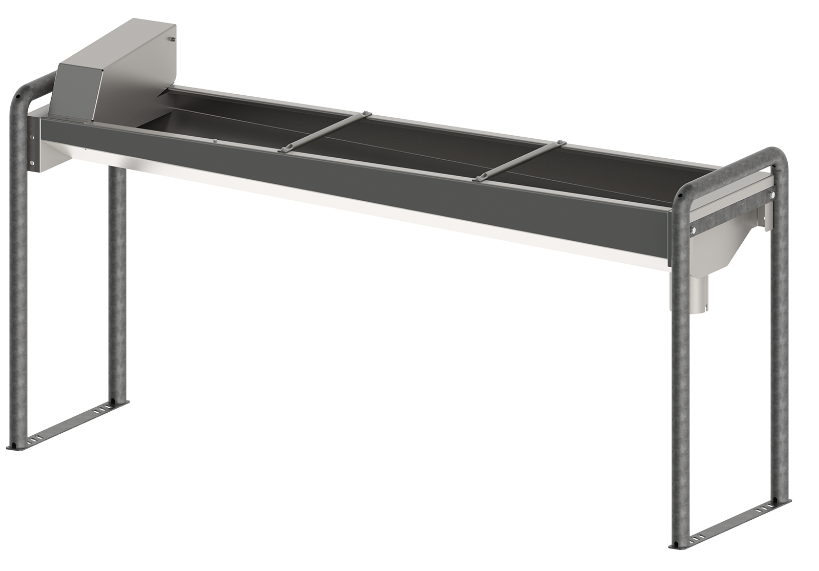 Trough drinker 190 cm: External dimensions with wall bracket 207 x 60 x 64 cm (LxWxH), external dimensions with base frame 212 x 58 x 102 cm (LxWxH)