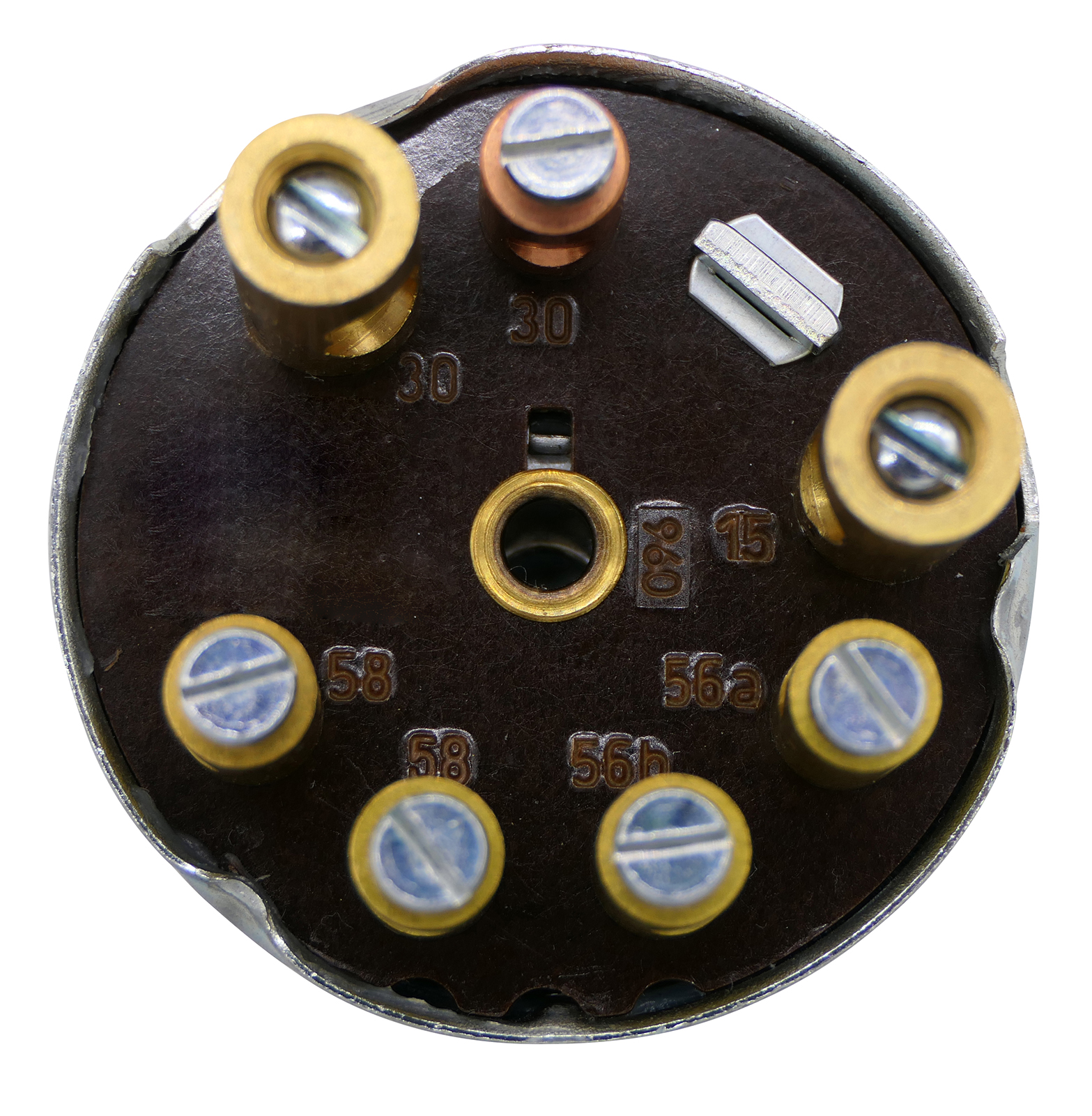 with screw terminals 15, 30, 30, 56a, 56b, 58, 58~
