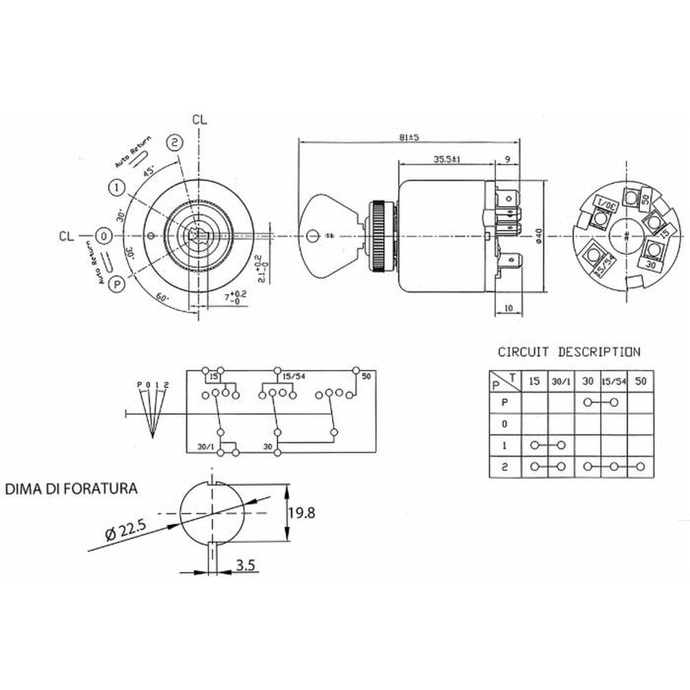 4 switching positions with preheating, suitable for Lamborghini, Same, 40 mm, mounting hole 22 mm