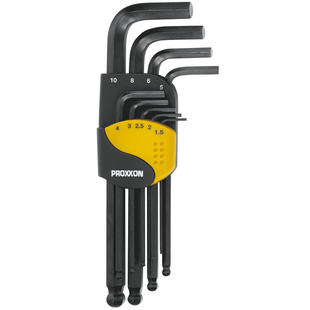 The short arm is chamfered, key made of high-strength chrome vanadium steel in the best Proxxon quality!< br>Delivered in a practical folding holder.Equipment: