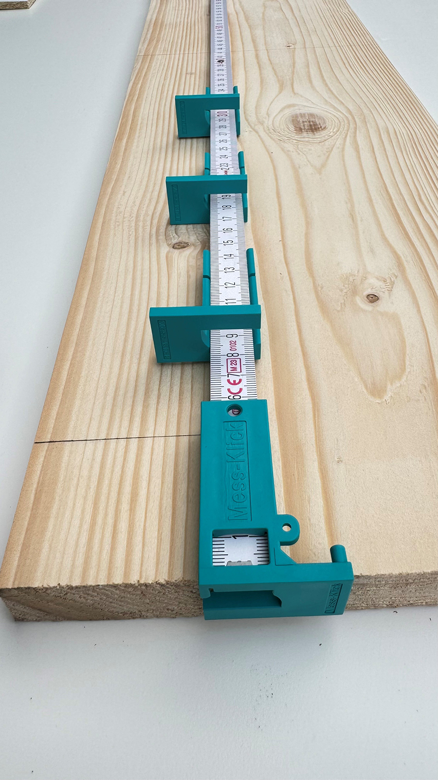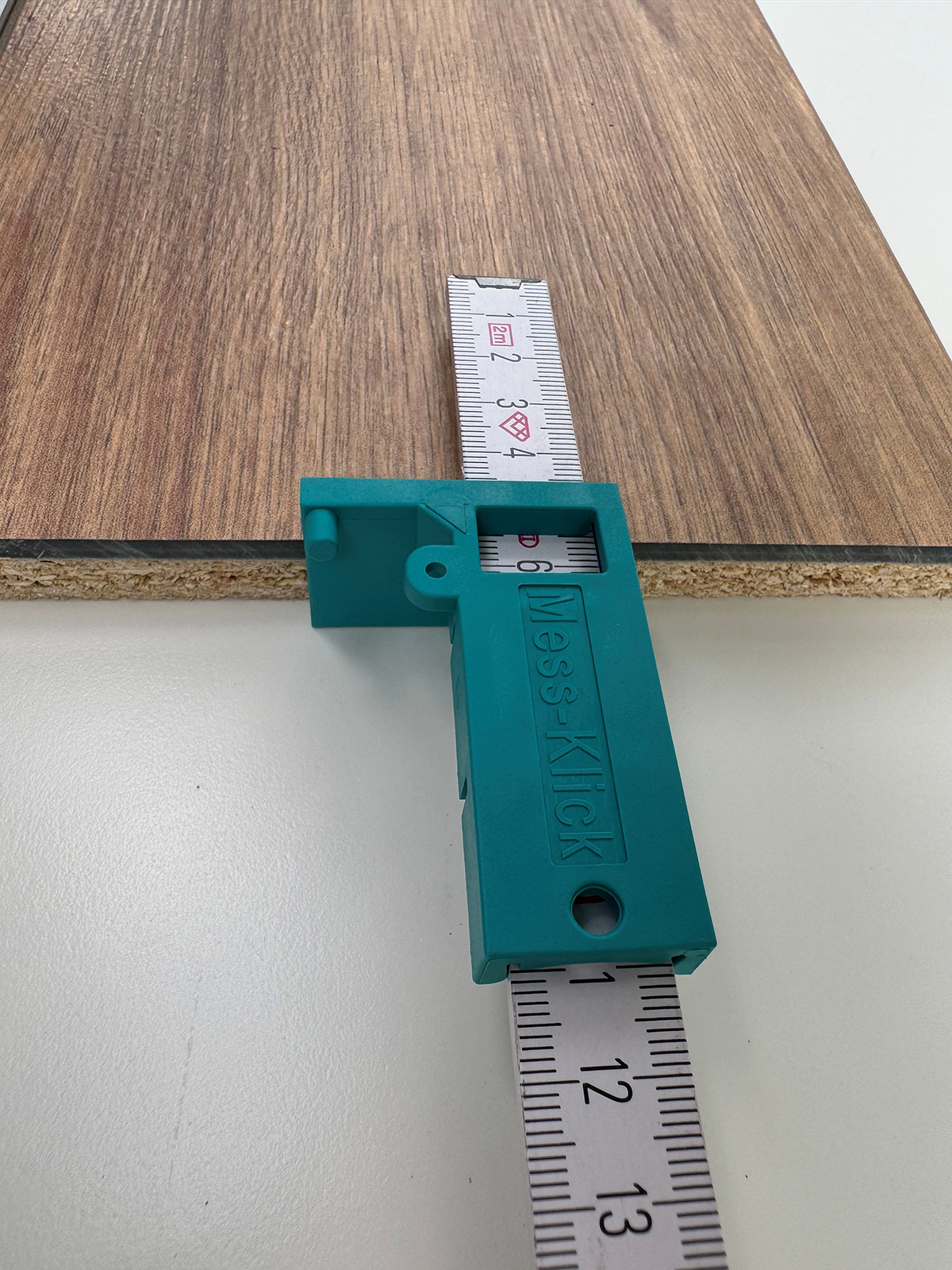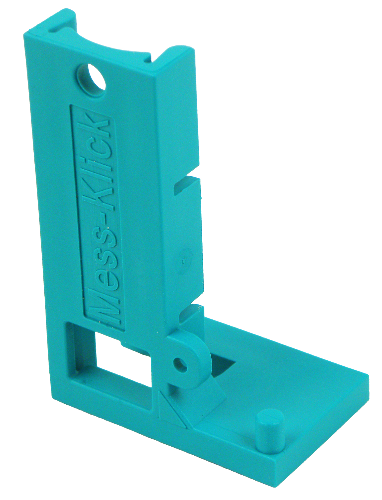 The problem solver and helper for clicking onto any standard wooden meter stick. Made of plastic. Color turquoise.
