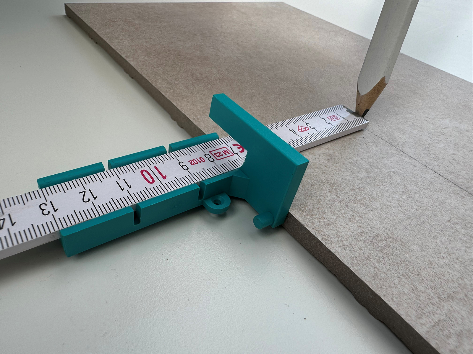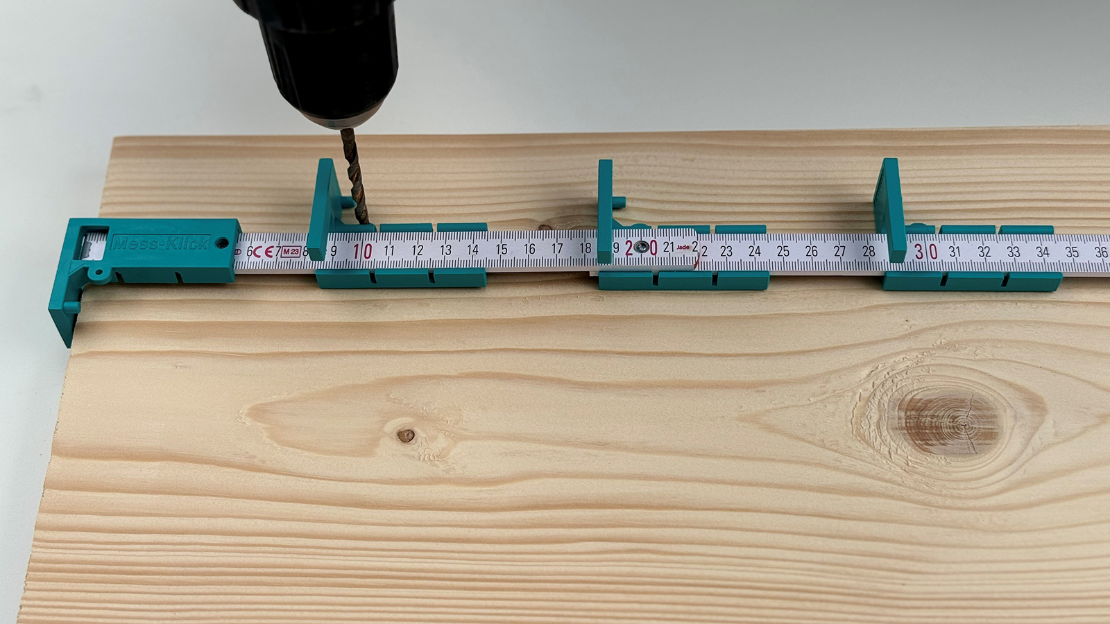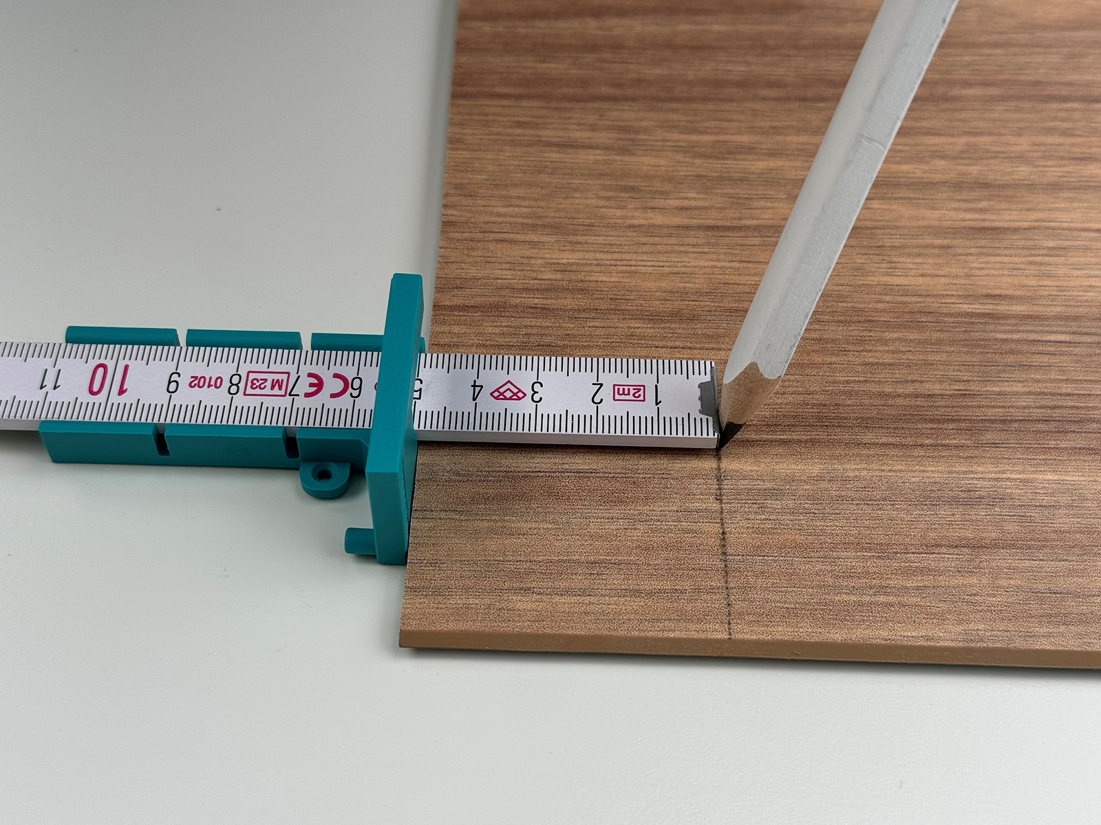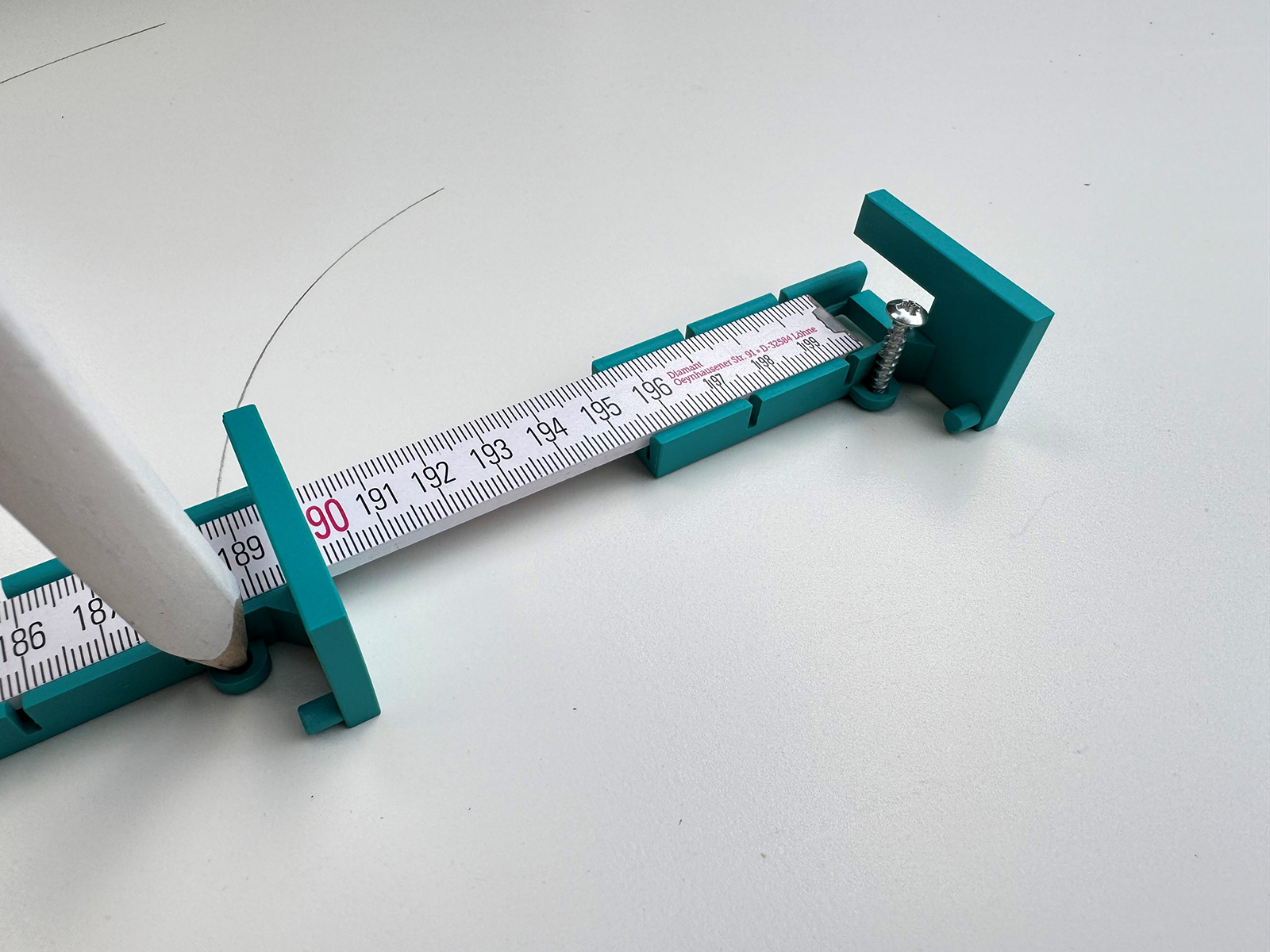 The problem solver and helper for clicking onto any standard wooden meter stick. Made of plastic. Color turquoise.