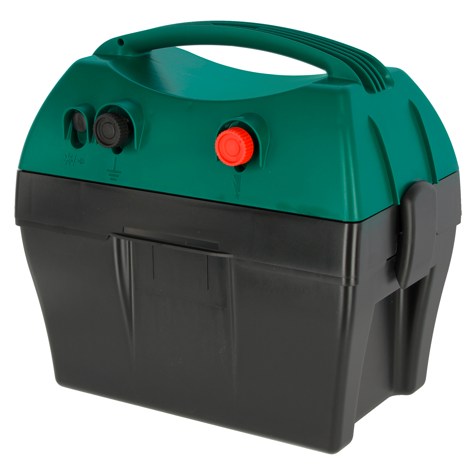 Housing and installation: The robust housing made of impact-resistant, UV-resistant plastic is weatherproof and durable. A carrying handle enables mobile use. The battery container protects 12 V batteries (max. 281×184×225 mm) and is secured with buckles