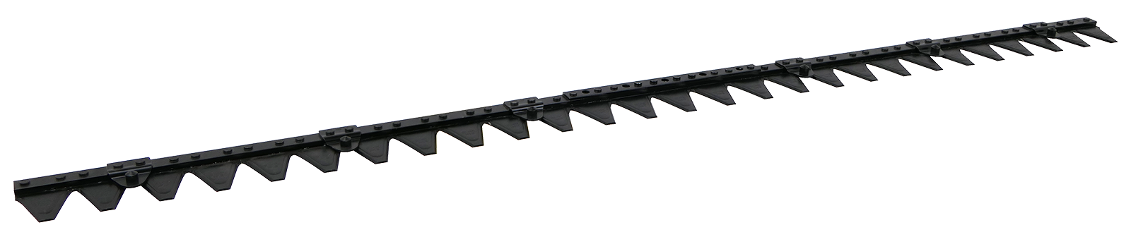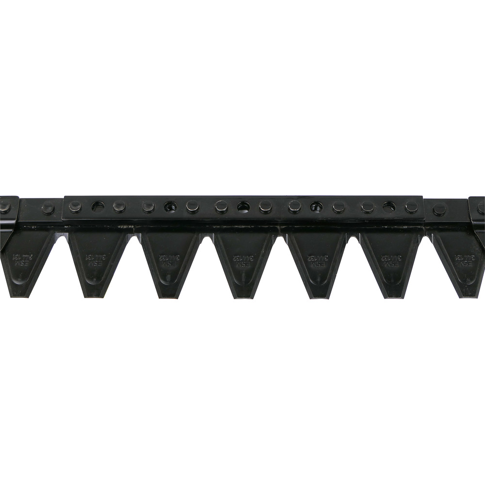Mower blade ESM 137cm 27 blades to bar with rocker arm. With reinforcement strip length 252mm and thickness 3.0mm, 2 threaded holes M8, hole spacing 101.6mm, original number ESM 251.0200 With 6 pin supports with mushrooms for hanging the rocker arms. Position of the pin carriers between 2nd &~ 3rd blade, 6th &~ 7th Blade, 10th &~ 11th Blade, 17th &~ 18th Blade, 21st &~ 22nd Blade and 25th &~ 26. Blade.