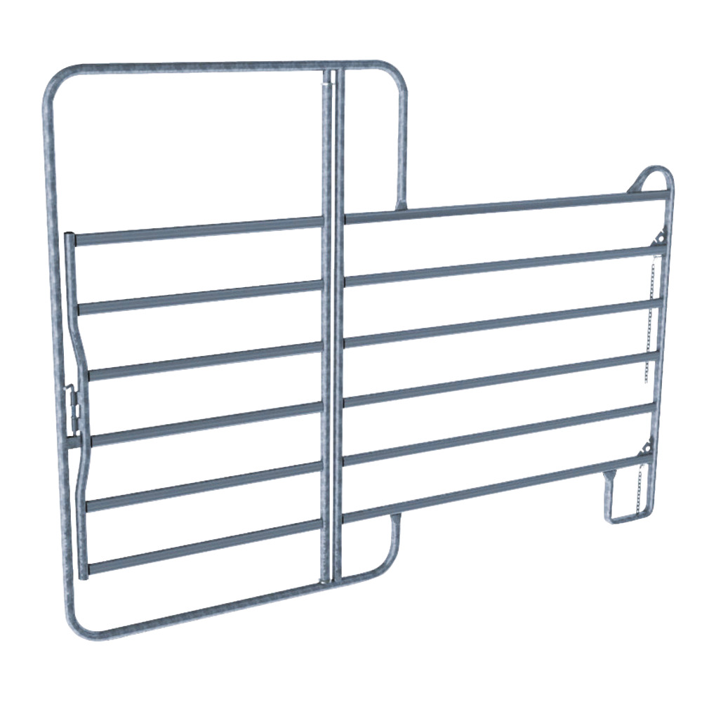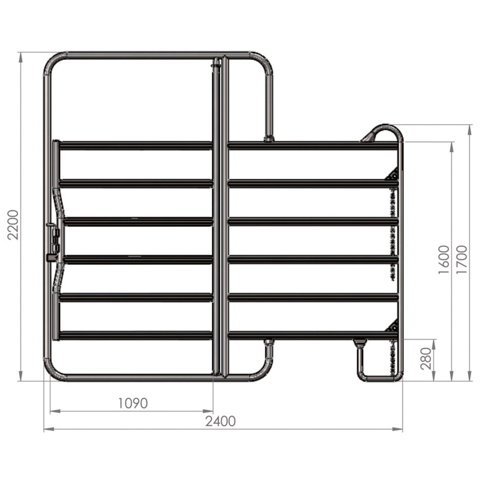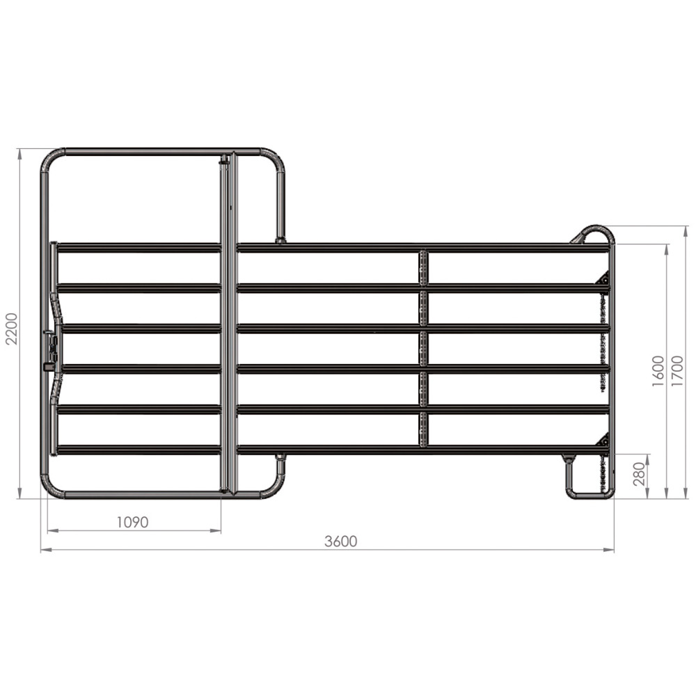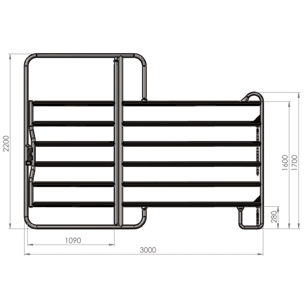The panel with gate allows a passage to be installed in the fencing. The total height is 2.20 m (gate entrance) and the gate width is 1 m. The height of the top fence pole is 1.60 m. With locking latch for opening and closing the fence~ completely hot-dip galvanized.