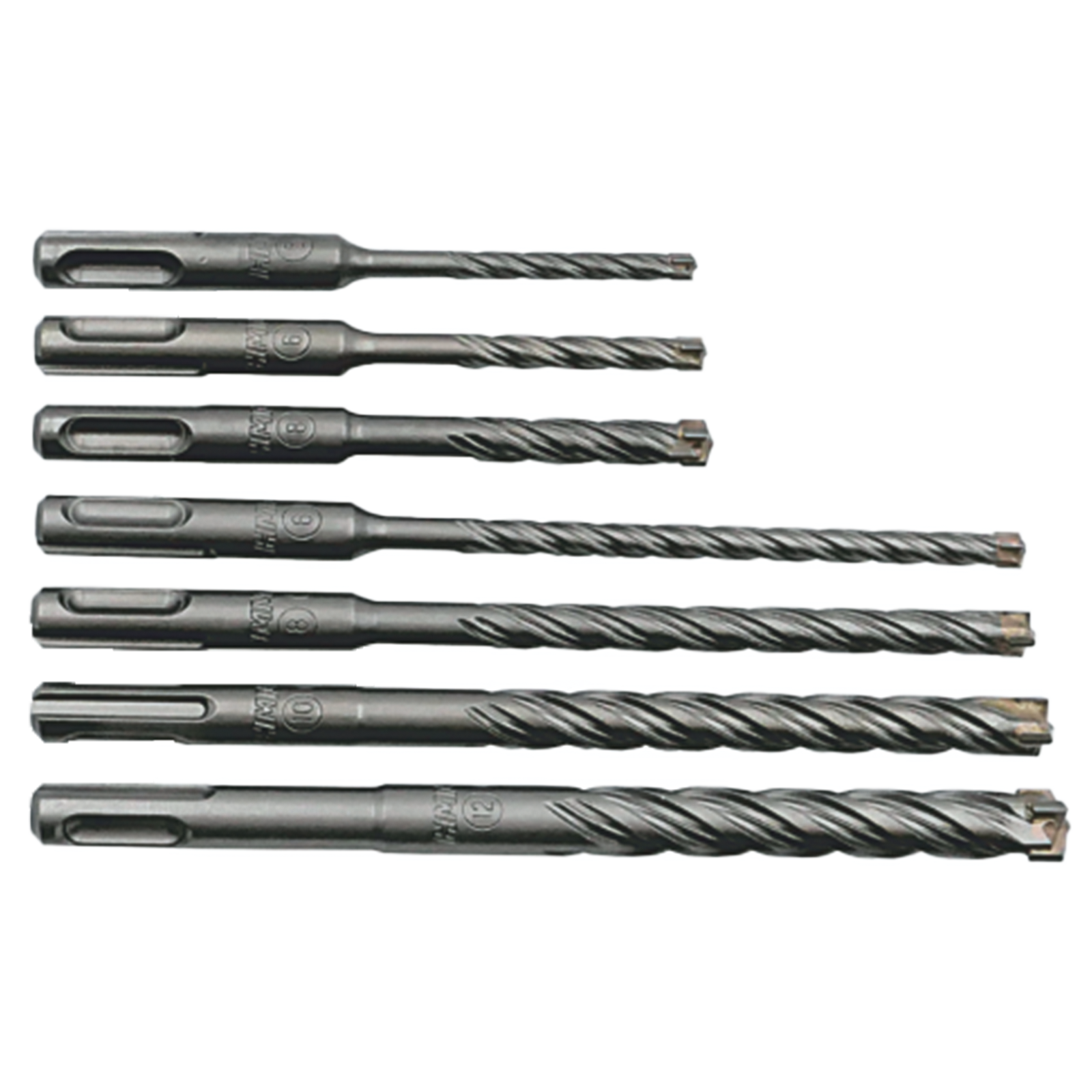 High-quality SDS drill bits with four carbide cutting edges for fast work in natural stone, masonry, concrete, and reinforced concrete.