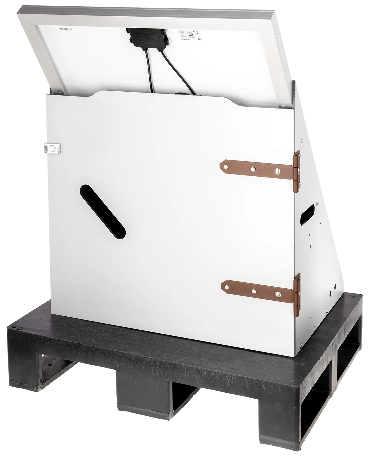 The complete system is delivered fully assembled on a pallet and only needs to be connected to the grounding system and the fence.