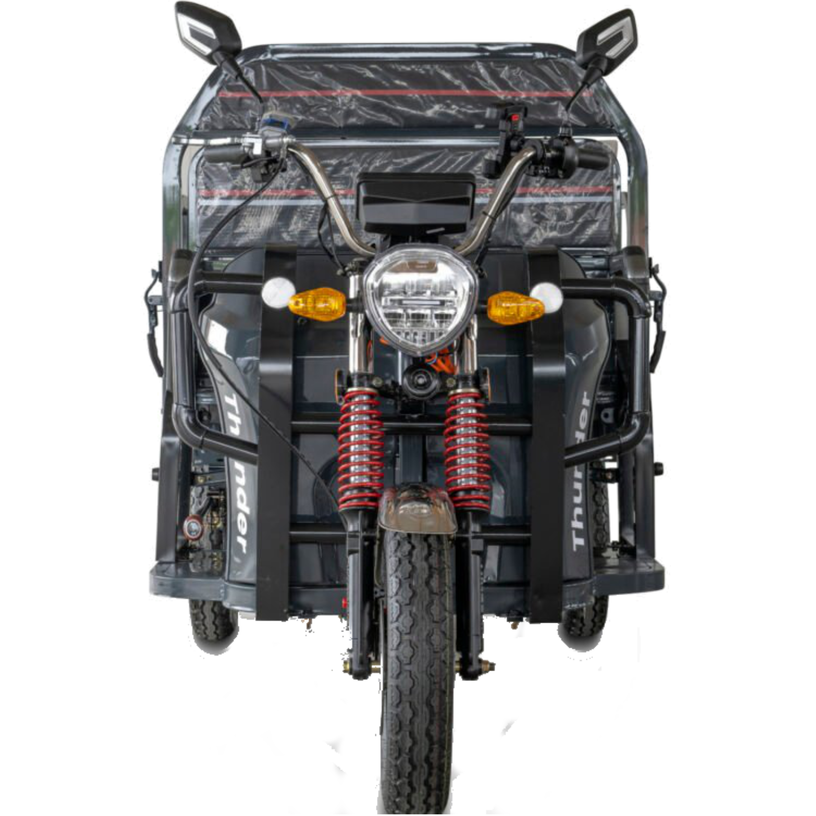 The electric cargo tricycle offers generous storage space under the driver's seat. This is particularly useful for personal items that can also be stored protected from the rain. The NERO Thunder electric cargo tricycle also has a CE certificate. The environmentally and climate-friendly van requires virtually no maintenance and is extremely inexpensive to maintain. From the driver's seat you have an optimal overview through the rear-view mirrors and you can always keep an eye on the speed and charge status via the digital speedometer. In addition to the 3 speed levels and the mechanical reduction, the cargo tricycle also offers a reverse gear.
