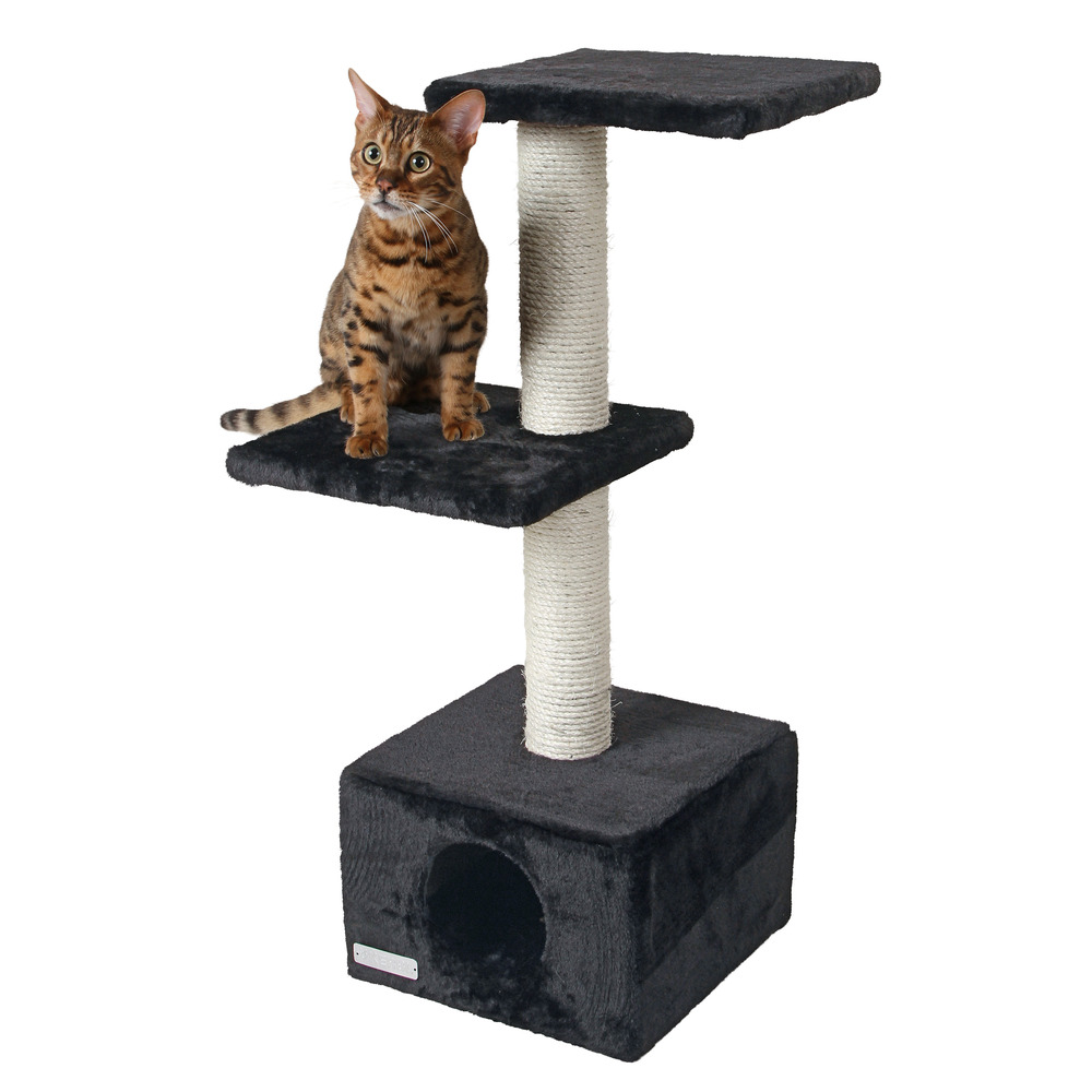 Height: 85 cm~ trunk 8 cm~ Cave: 30 x 30 x 20 cm~ Sisal glued to the columns.