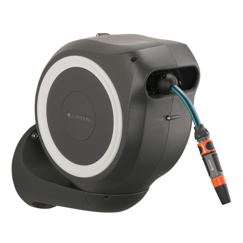 Practical hose reel equipped with 20 meters of 11mm Gardena quality hose and all fittings. Complete with wall bracket including screws and dowels as well as connecting cable. Dimensions: (LxWxH) 54x23.5x46.50 cm.
