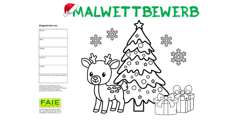 An alle Eltern und Kinder! Das Christkind und der Weihnachtsmann haben uns beauftragt auch heuer wieder den FAIE Weihnachts- Malwettbewerb zu veranstalten.